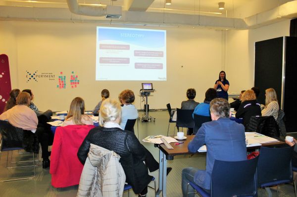 Po części teoretycznej uczestnicy przeszli do trwających 1,5 godziny warsztatów, podczas których mieli okazję przetestować moduł „STEM w reklamie – znajdź stereotypy”. Scenariusz dotyczy tematu postrzegania kobiet i mężczyzn przez pryzmat zbudowanych w naszej podświadomości stereotypów, np. w reklamach.